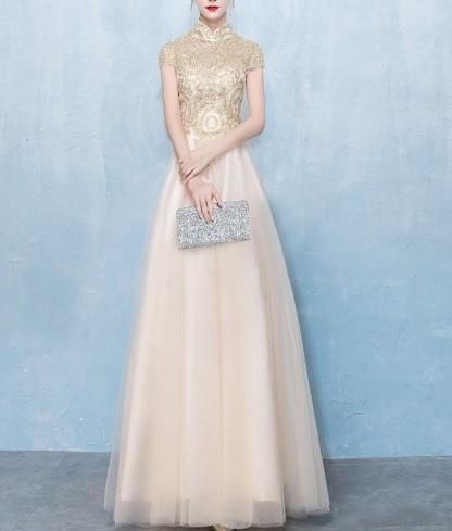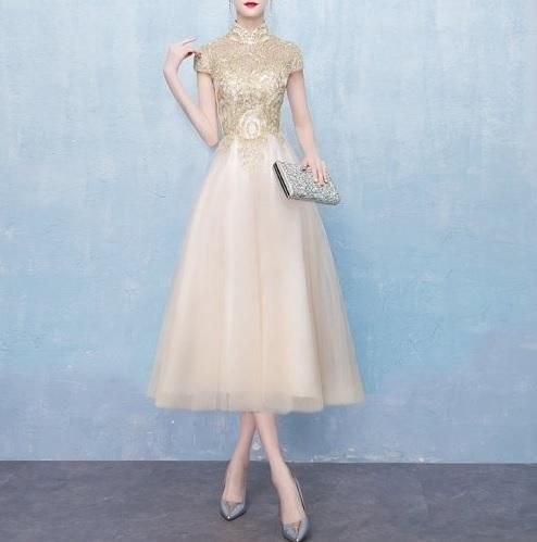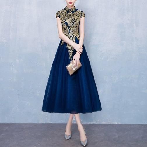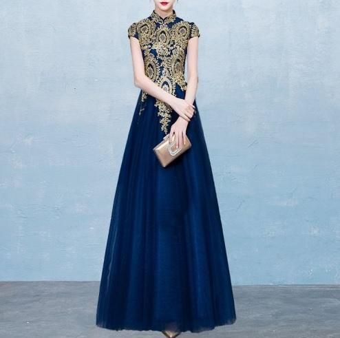 パーティードレス ハイネック ゴールド ネイビーブルー エレガント drgz5038