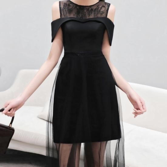 オープンショルダーとシアーデザインがおしゃれです。