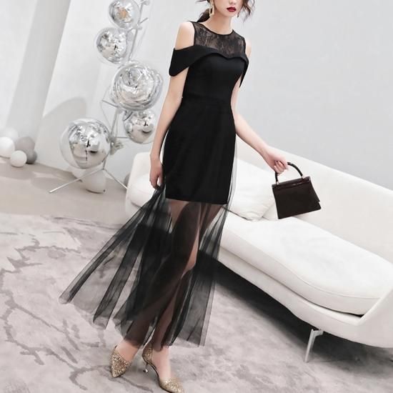 パーティードレス ロング ブラック シアー 結婚式 お呼ばれ 卒業式 入学式 謝恩会 二次会 ディナー 演奏会 レセプション ホテル イベント dr00792
