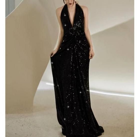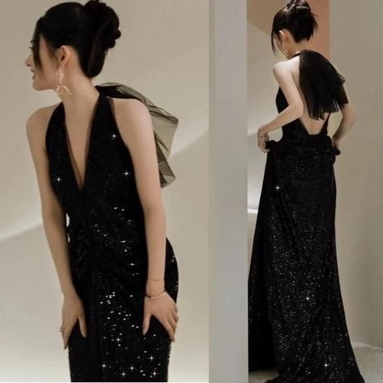 パーティードレス ロング Vネック ノースリーブ ブラック ワンピース エレガント 結婚式 お呼ばれ 卒業式 入学式 謝恩会 二次会 ディナー 演奏会 レセプション ホテル イベント dr01195