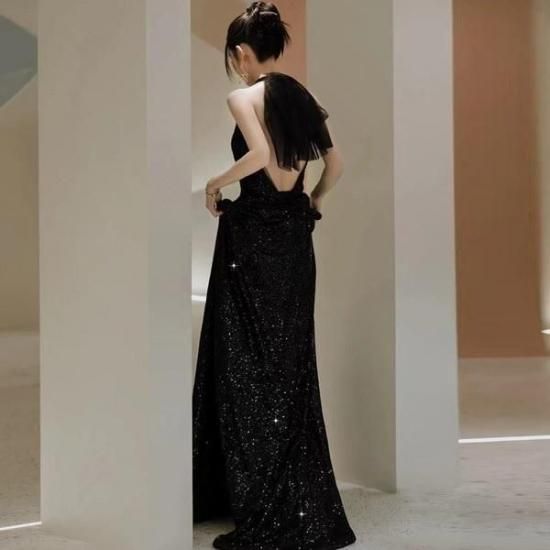 タイムレスな魅力のブラックロングドレス。