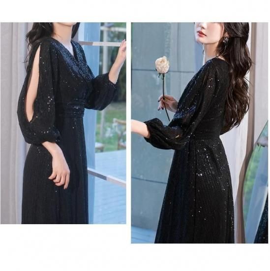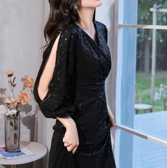 パーティードレス ロング Vネック カットアウト ワンピース エレガント 結婚式 お呼ばれ 卒業式 入学式 謝恩会 二次会 ディナー 演奏会 レセプション ホテル イベント dr01199