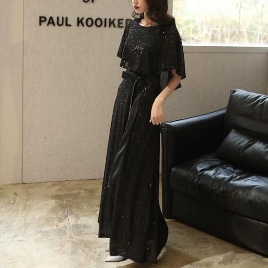 パーティードレス ロング ウエストリボン ラメ ワンピース エレガント 結婚式 お呼ばれ 卒業式 入学式 謝恩会 二次会 ディナー 演奏会 レセプション ホテル イベント dr01203