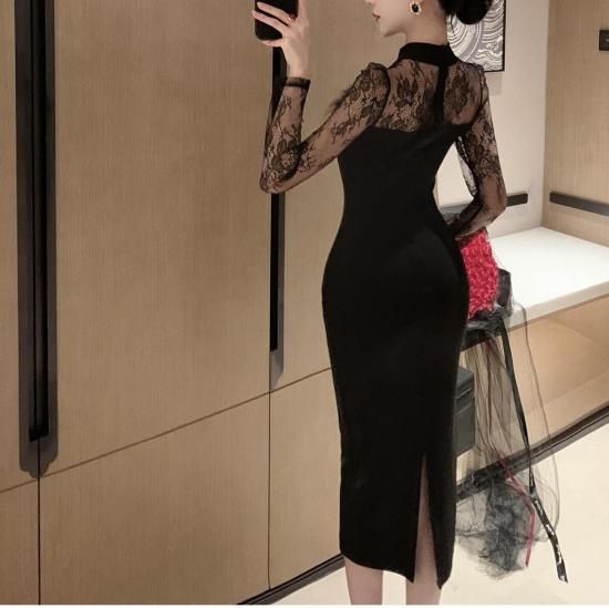 パーティードレス ロング レース タイト ワンピース エレガント 結婚式 お呼ばれ 卒業式 入学式 謝恩会 二次会 ディナー 演奏会 レセプション ホテル イベント dr01205