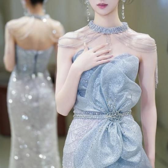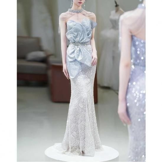 パーティードレス ロング丈 イブニングドレス フィッシュテール ラグジュアリー ブライダルドレス 結婚式 披露宴 舞台 演奏会 お色直し 発表会 dr01213