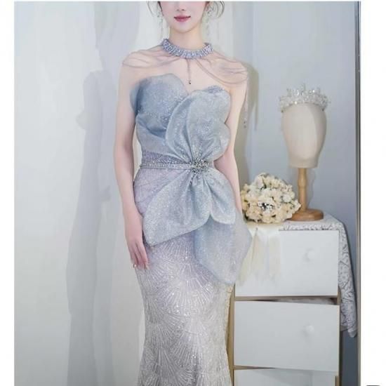 優雅で華やかなロング丈のフィッシュテールドレス。