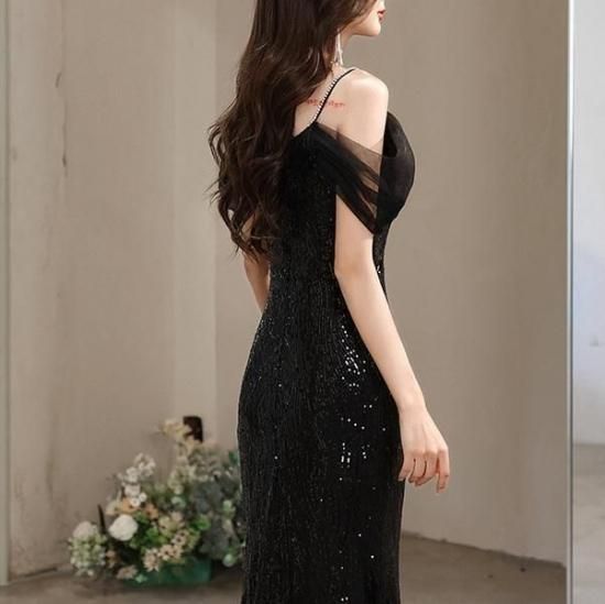 パーティードレス ロング丈 スリット スパンコール ワンピース エレガント 結婚式 お呼ばれ 卒業式 入学式 謝恩会 二次会 ディナー 演奏会 レセプション ホテル イベント dr01218