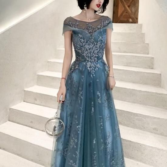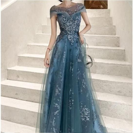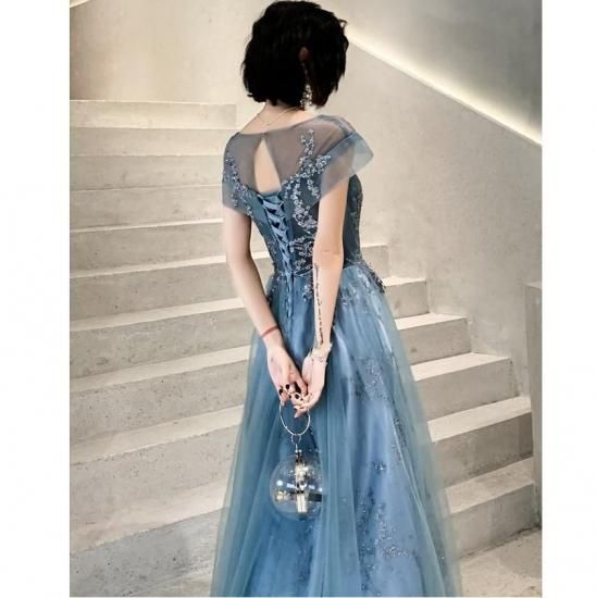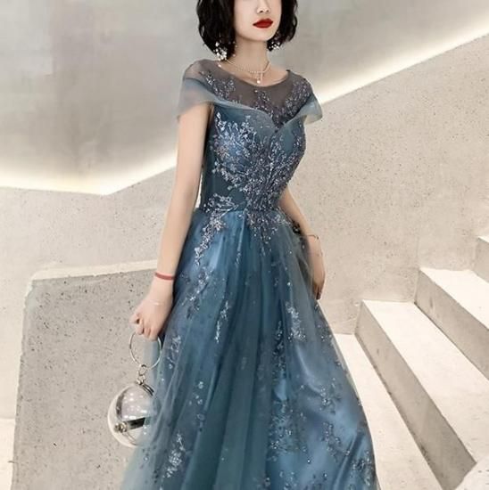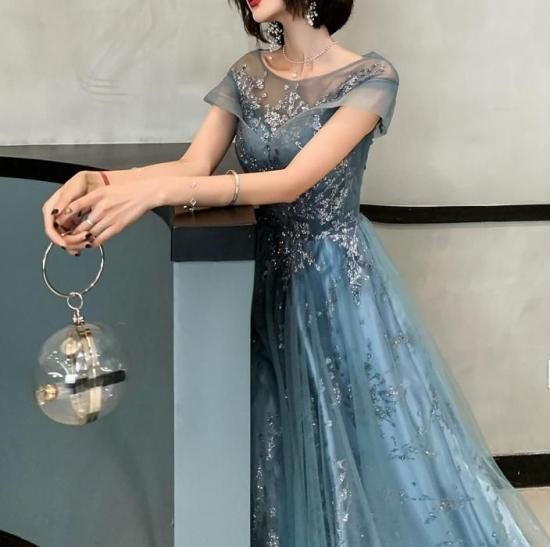 パーティードレス ロング丈 シアー スパンコール ワンピース エレガント 結婚式 お呼ばれ 卒業式 入学式 謝恩会 二次会 ディナー 演奏会 レセプション ホテル イベント dr01223