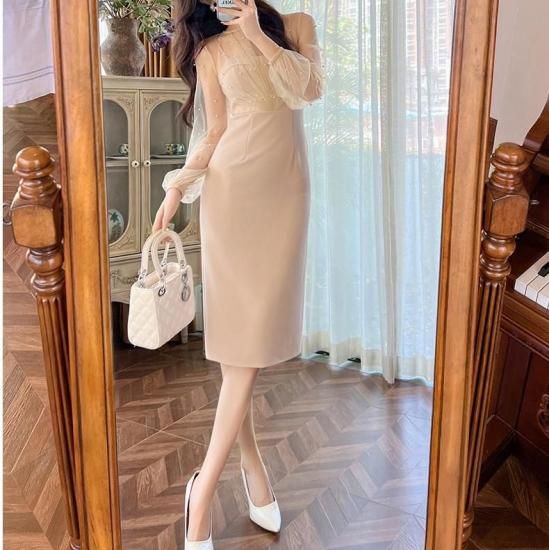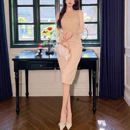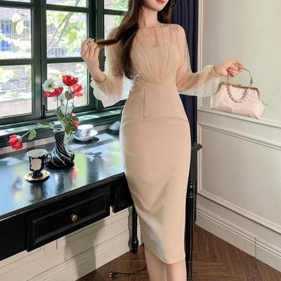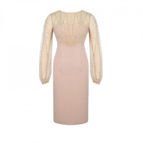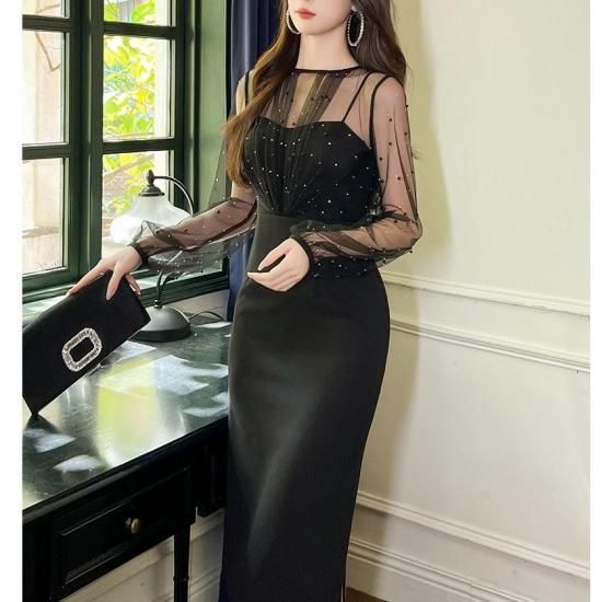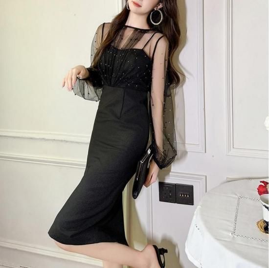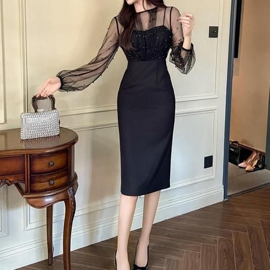 パーティードレス 膝丈 シースルー ビジュー パール ワンピース エレガント 結婚式 お呼ばれ 卒業式 入学式 謝恩会 二次会 ディナー 演奏会 レセプション ホテル イベント dr01224