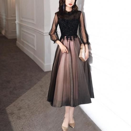 パーティードレス ロング ミモレ 袖有り ワンピース エレガント 結婚式 お呼ばれ 卒業式 入学式 謝恩会 二次会 ディナー 演奏会 レセプション ホテル イベント dr01234