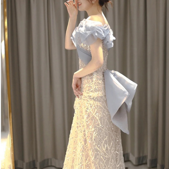 パーティードレス ロング丈 イブニングドレス フィッシュテール ラグジュアリー ブライダルドレス 結婚式 披露宴 舞台 演奏会 お色直し 発表会 dr01236