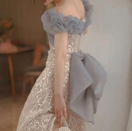 ロング丈のフィッシュテールシルエットが優雅なドレス。