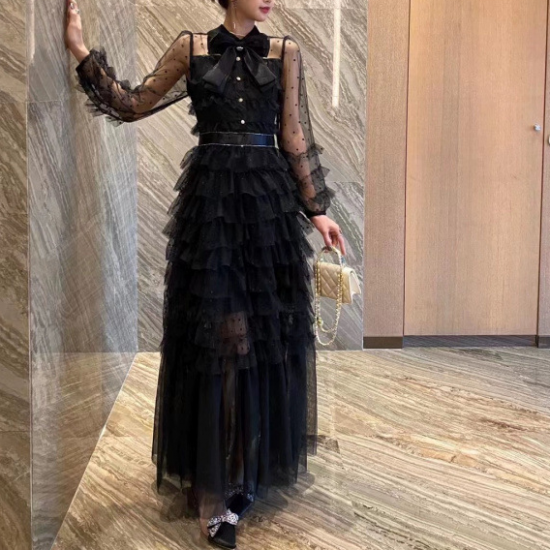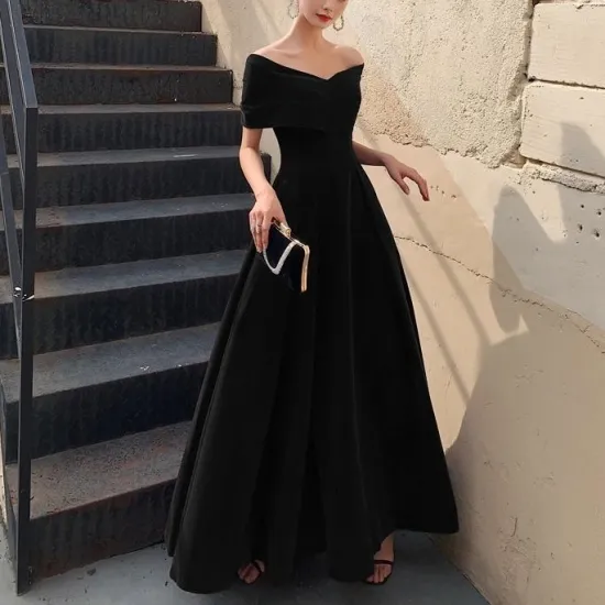 着席する機会が多いため、フォーマルなシーンでは肌の露出を抑えた膝下かロング丈のドレスが適切です。