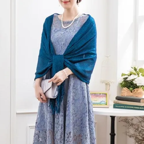 ショールやストール、ボレロなどの羽織物を合わせることで印象を変えるだけでなく、空調対策や露出を抑えるのにも役立ちます。