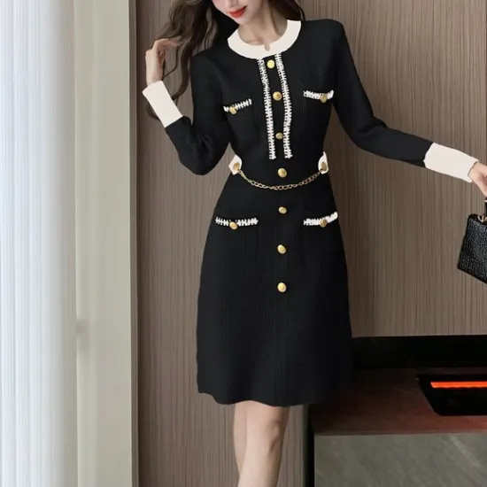 ブラックやネイビーのワンピースなら、明るいカラーのジャケットや小物を合わせて華やかな印象にしましょう。