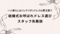 花嫁の特権とされている白色の花柄ドレスやワンピースは避けるようにしましょう。