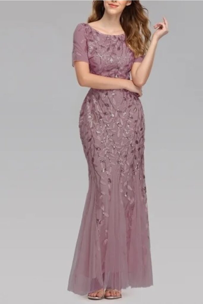 くすみカラーの紫のドレスやワンピースは大人っぽい雰囲気を演出してくれるのでおすすめです。