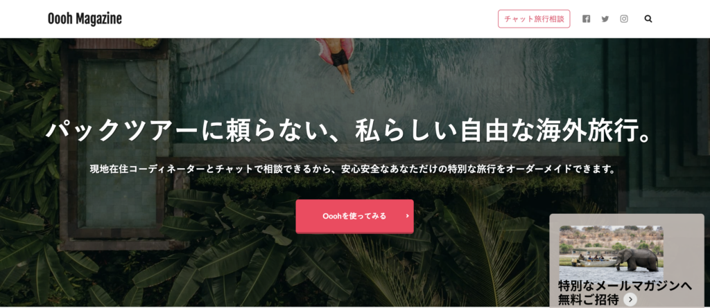 「Oooh Magazine(ウーマガジン)」は、オーダーメイド旅行サービスを展開するOooh株式会社様が運営する、「旅に役立つ最新の海外旅行情報」を届けるWebメディアです。