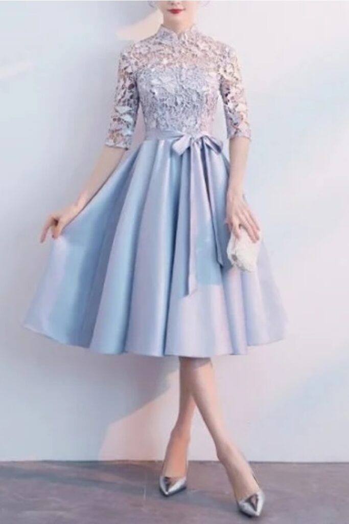 スカート丈は短すぎる丈は避けて膝丈やミモレ丈のドレスを選ぶことがポイントです。
